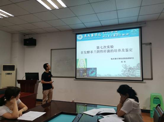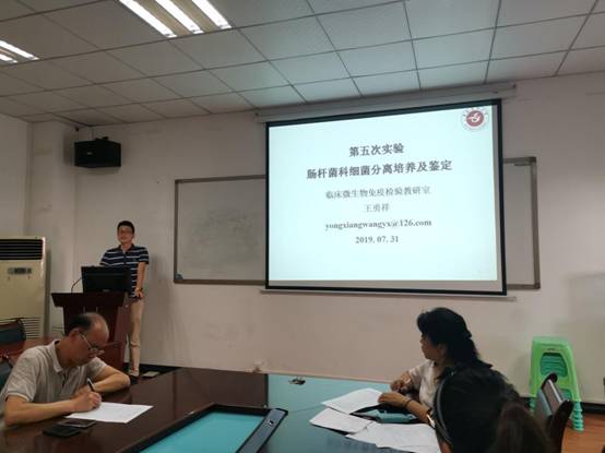第一次试讲于2019年7月31日进行,本次会议邀请了教研室陈泽慧教授、黄健副教授、何应中副教授与刘凤副教授等教师参加了本次试讲评分。在试讲前,教研室主任陈泽慧教授指出,试讲要严格按照公司和医学医公司相关规定执行。本次试讲由本教研室刘红秀老师对《临床微生物学检验技术》课程中的实验课实验三《革兰阳性球菌鉴定》,王勇祥老师对实验五《肠杆菌科细菌分离培养及鉴定》,高松老师对实验六《非发酵革兰阴性杆菌的分离培养及鉴定》进行了试讲;田地老师对课程《临床免疫学检验技术》实验课中实验一《梅毒螺旋体抗体检测》进行了试讲。