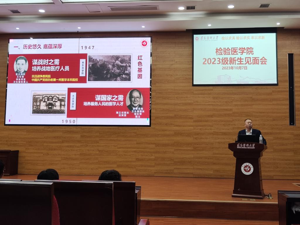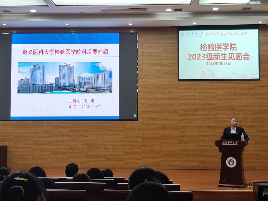 为深入贯彻党的教育方针,落实立德树人根本任务,指导和帮助2023级新生尽快了解和适应新环境、端正学习态度、明确学习目的、增强学习动力、科学规划学习生活,做好新生入学教育,永利3044集团官网于2023年10月7日19:00在新蒲校区道德讲堂举办了2023级新生见面会。检验医公司党委书记周光润、永利3044集团官网副经理闵迅博士出席本次活动,各科室负责人、辅导员、兼职班主任参与本次活动。本次活动由永利3044集团官网办公室主任蔡亮容主持。