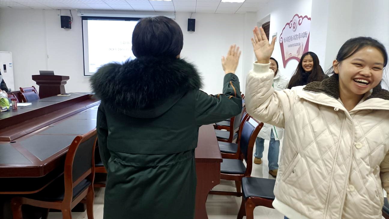 陆老师给同学们击掌打气