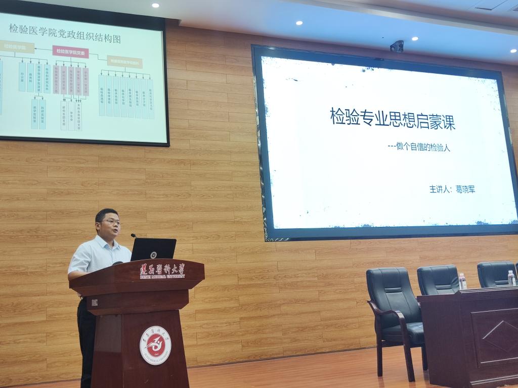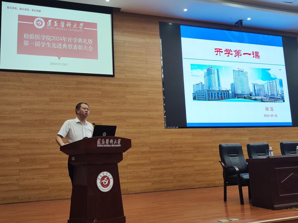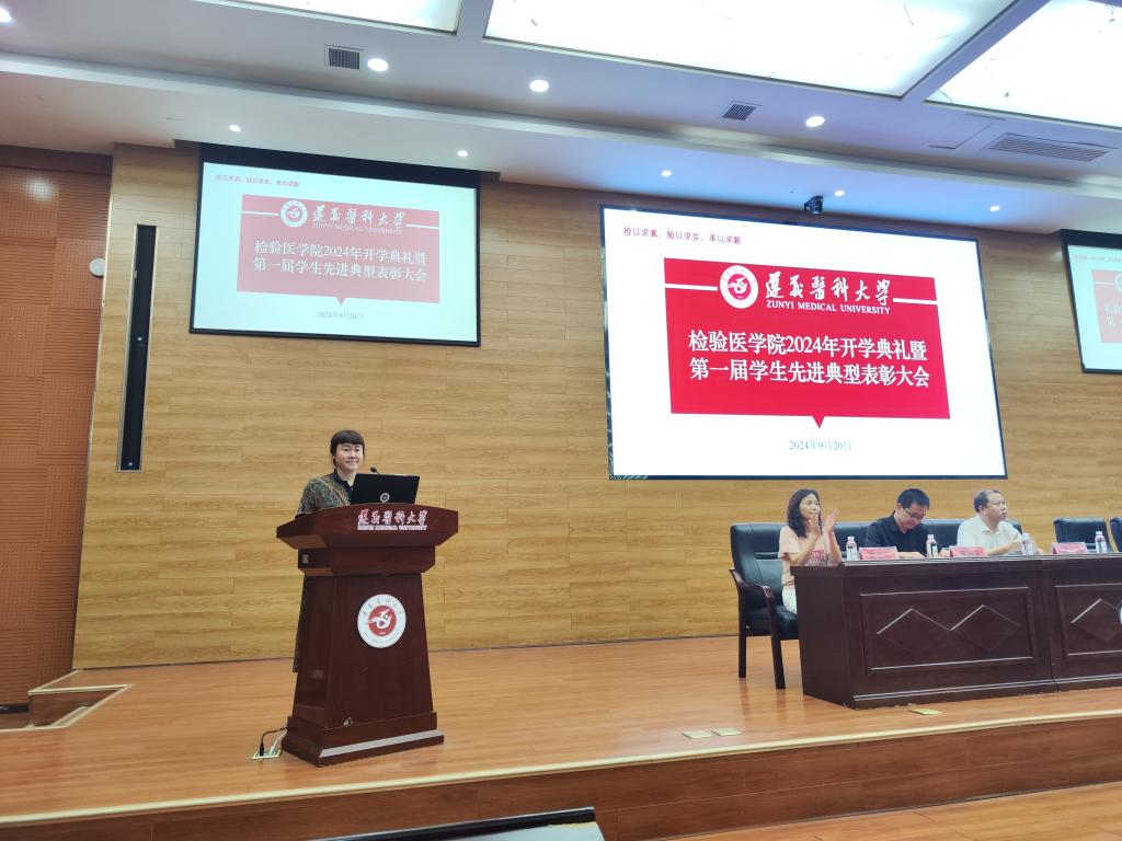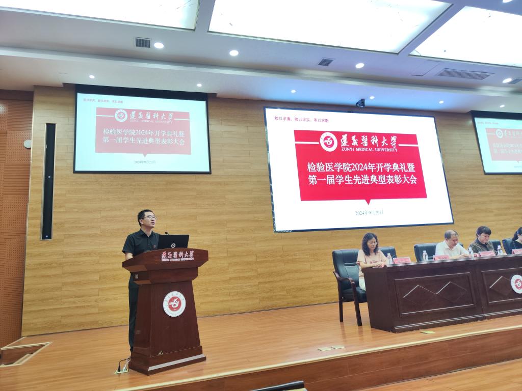大会伊始,罗治宇副书记带领公司全体师生集体诵读毛泽东主席的《七律·长征》,感悟伟大长征精神。随后,周光润书记为2024级新生致欢迎辞。她勉励同学们要珍惜大学时光、积极进取、苦练本领、增长才干、勇敢追梦,努力成长为一名对社会有用的检验人才。公司副经理闵迅以《永利3044集团官网的院科文化》为题给同学们讲授开学第一课,带领同学们了解遵医检验的历史传承和发展成果。第二附属医院检验科主任葛晓军则以自身的成长经历为同学们讲授专业思想启蒙课,鼓励他们积极投身于充满挑战和机遇的医学检验行业。