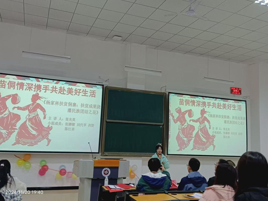 参赛队伍通过讲述不同民族的风俗文化、中华民族大家庭形成的经典历史故事、中国共产党带领少数民族地区摆脱绝对贫困的现实案例,给同学们带来了一场关于中华民族大家庭的知识盛宴。赛后,程俊霖博士对参赛队伍逐一点评,提出改进意见,罗治宇副书记则鼓励观众要向参赛队伍学习,抓住机会多上台展示,不断提升自己的综合能力,特别是语言表达能力。