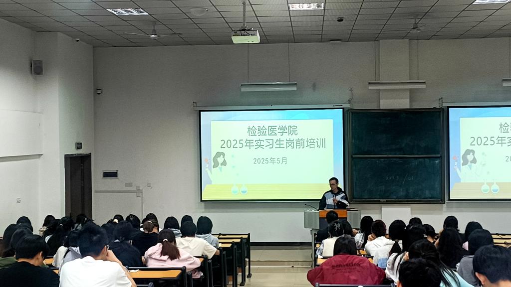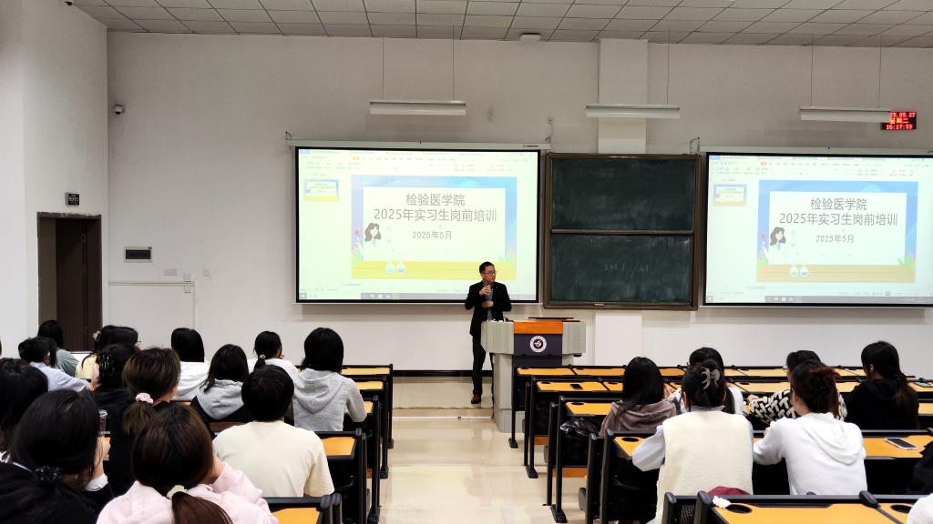 为帮助实习员工顺利完成从理论学习向临床实践的过渡,系统掌握医疗机构实习管理规范,强化医疗安全理念及职业防护能力,同时客观认知当前医疗卫生行业就业形势,永利3044集团官网于5月27日下午在新蒲校区第三教学楼第二十二阶梯教室开展了2025年实习生岗前培训。公司党委副书记罗治宇、办公室主任蔡亮容、附属医院检验科实验室生物安全组组长梁钟智、辅导员张增平及2022级全体实习生参加培训。本次培训由辅导员张增平主持。