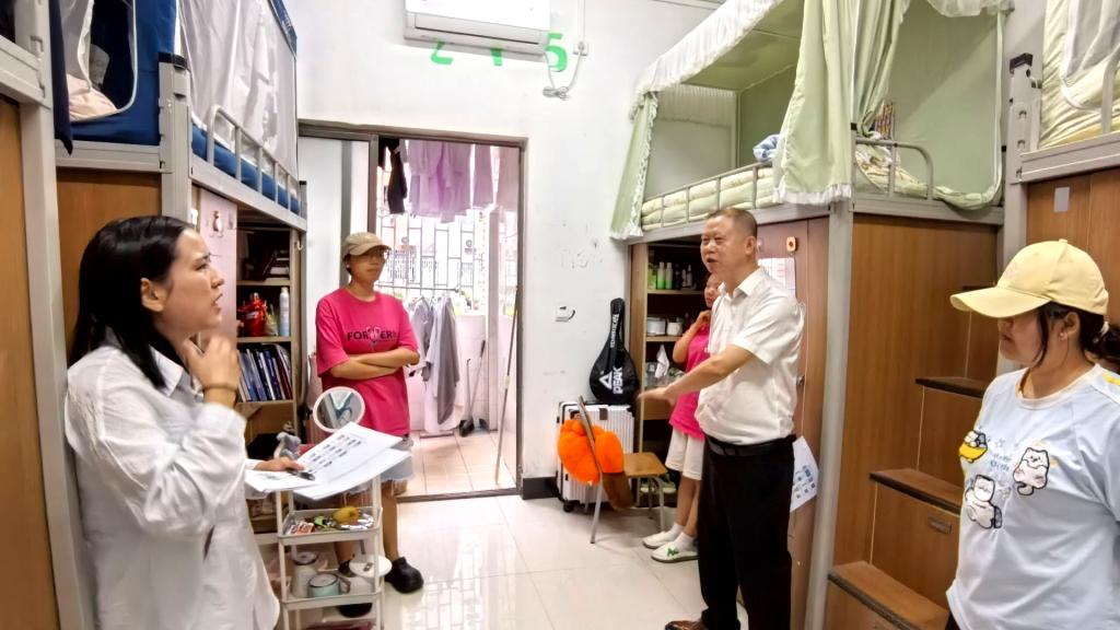 在员工寝室,老师们秉持“回宿舍等于回家”的理念,与员工们进行了亲切友好的交流,充分了解员工的实际需求。同时,从用电安全、交通安全、防溺水、防范电信网络诈骗、心理健康等多个方面,提醒同学们要时刻牢记自己是自身人身安全的第一责任人。