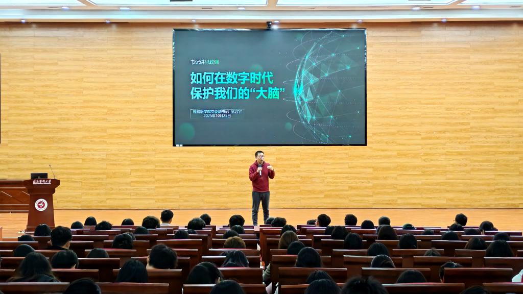 为引导员工树立正确的世界观、人生观、价值观,科学使用手机与互联网,营造良好学风,2025年10月25日,检验医公司党委副书记罗治宇以“如何在数字时代保护我们的‘大脑’”为主题,为全体在校本科生讲授专题思政课。
