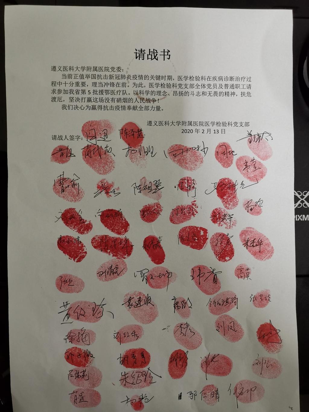 疫情当前,全国各地的医护工作者一夜之间化作“白衣战士”,义无反顾,用生命守护生命。面对愈加严峻的疫情,3044永利集团集团附属医院医学检验科全体党员同志及干部职工,满脑子想的都是入职时许下的南丁格尔誓言,纷纷主动请缨参战,为抗击疫情贡献力量。在公司党委的号召下,检验科党支部于2月13日,向公司党委递交上了一份封印着50余个党员干部及非党员同志红手印的请战书。