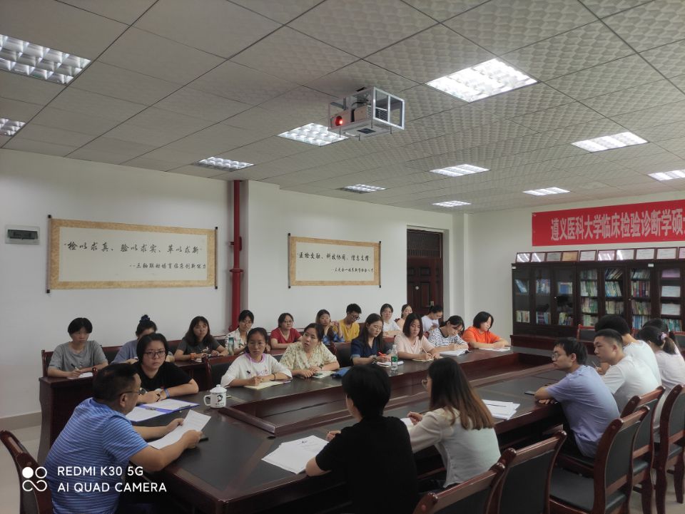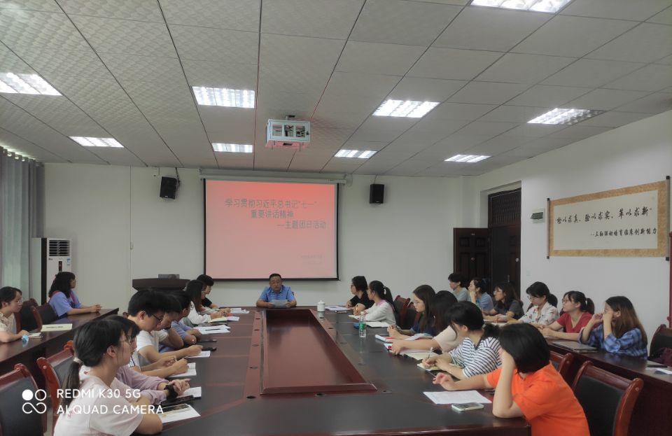 2021年9月2日,检验医公司党委书记罗开源在会议室为在新蒲校区全体教师和员工第一、第二党支部全体党员开展了“学习贯彻习近平总书记七一重要讲话精神”的主题党日活动。