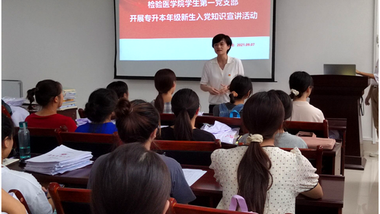 2021年9月7日17点,永利3044集团官网员工第一党支部在永利3044集团官网学术报告厅开展了专升本年级新生入党知识宣讲活动。会议由永利3044集团官网员工第一党支部副书记陆超主持,党支部组织委员谌孙美及60名2019级专升本新生参加。