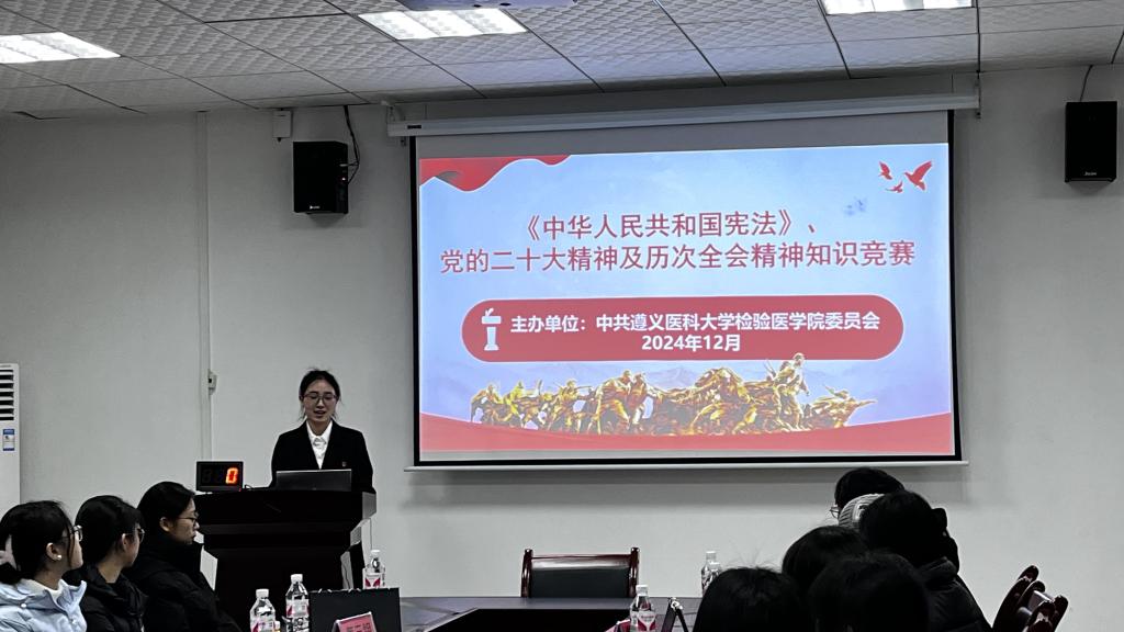 2024年12月6日,检验医公司党委在新蒲校区2号实验楼永利3044集团官网会议室举办了《中华人民共和国宪法》、党的二十大精神及历次全会精神知识竞赛。检验医公司党委书记周光润、员工第二党支部书记张增平、各支部员工党员代表、入党积极分子代表参加本次活动。