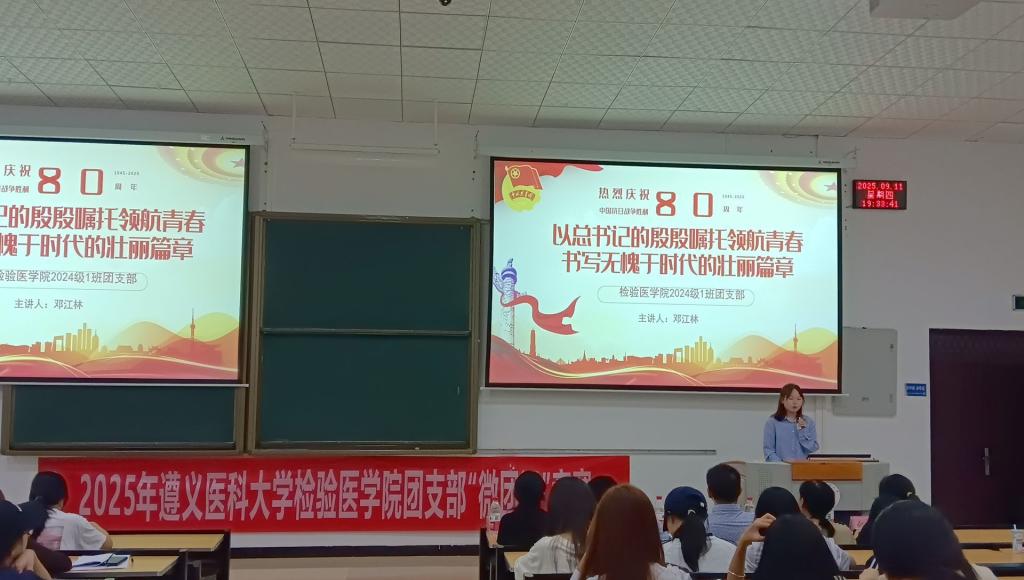 为深入学习贯彻习近平新时代中国特色社会主义思想,充分发挥共青团在高校员工思想政治工作中的引领作用,永利3044集团官网团委于2025年9月11日晚7点,在新蒲校区第八阶梯教室隆重举办了团支部“微团课”比赛。出席此次活动的有检验医公司党委副书记罗治宇、马克思主义公司程俊霖博士、专职辅导员孙倩及各班员工代表。