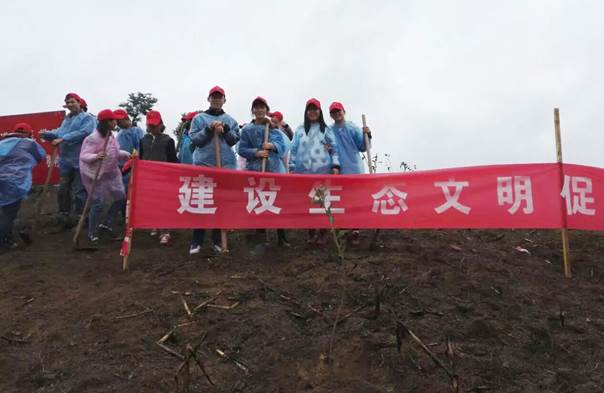 经过一段车程后到达新舟镇,姚梦莹老师带着三名同学冒着绵绵细雨前进了半小时才到达了植树区域的山脚下,但植树区域在山顶,所以大家仍冒着雨并且踏着泥泞险要的山路登上山顶,经过艰难的攀登,终于来到了植树区域。于是大家合理分工,一部分拆树苗,一部分挖坑,一部分掩土,场面十分热闹,各自做着自己的事。虽然天公不作美,一路上都下着雨,但是这丝毫没有影响到同学和老师们植树的积极性,同学们依旧热情高涨,并且老师们也不甘示弱,都纷纷自己动手参与到了植树活动当中。大家齐心协力,很快就将所有的树苗种完了。随后同学们纷纷在自己种的树面前合影留念,并且心中自豪感油然而生,对自己取得的一番小成就感到欣慰。最后,大家经过崎岖而泥泞的山间小路艰难的回到乘车点回到公司。