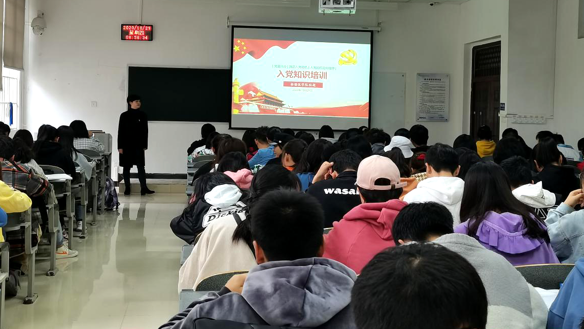 为扩大党员队伍,深化教育培训,2020年10月29日上午9点,永利3044集团官网在新蒲校区1号教学楼1-4A教室开展了“入党知识培训”讲座。永利3044集团官网辅导员陆超以及2020级全体新生参加此次培训。