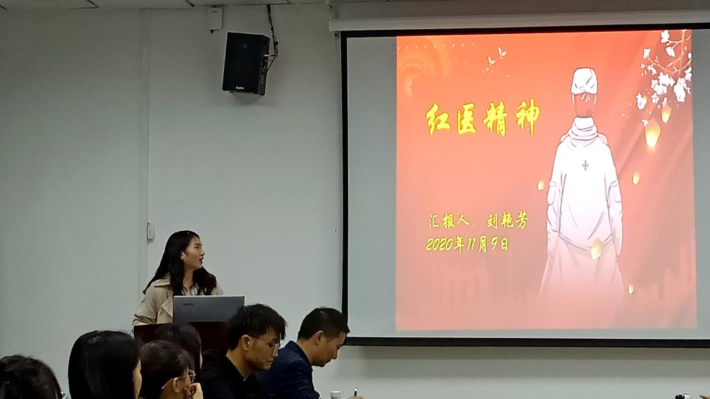 在接下来的讲党课、讲好党课环节,刘艳芳同志以红衣精神为主题,讲述新时代应如何弘扬红医精神,做一名悬壶济世、妙手仁心的医务工作者,促进祖国卫生事业的发展;杨荣韬同志以党的十九届第五次全体会议学习报告学习心得为演讲主题;阳诗蕾同志则从坚定文化自信,实现民族复兴的角度为主题分别进行了精彩演讲,赢得全体党员的热烈掌声!