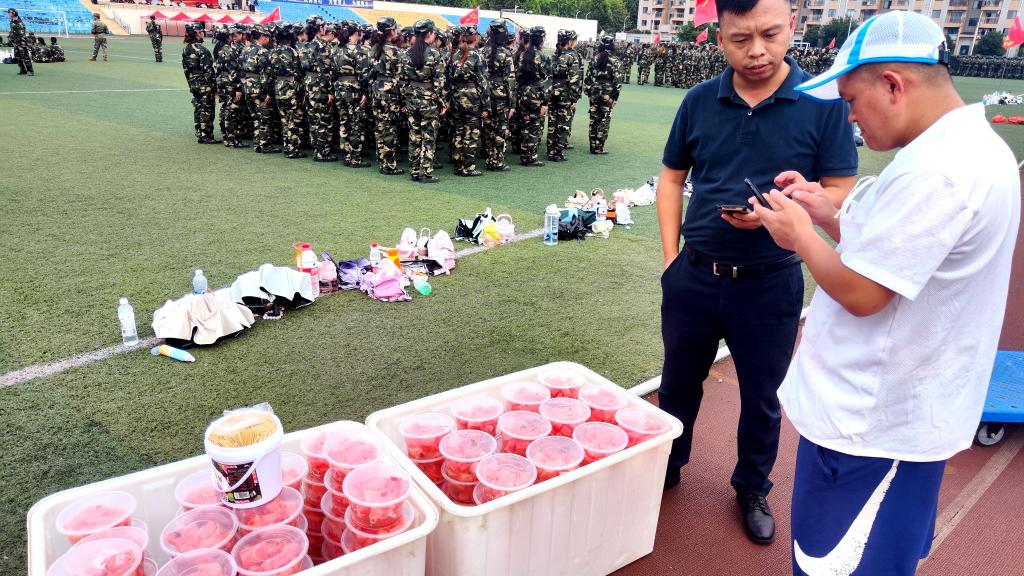 王玺副书记一行于7月6日下午5点10分到达训练场,5点30分左右为承训教官和参训员工送上消暑西瓜,并叮嘱同学们要注意防暑、注意身体、注意安全,遇到困难及时向教官和辅导员老师沟通。慰问活动现场暖意融融,小小举动,让2022级同学真正感受到了来自永利3044集团官网这个温暖大集体的关爱。