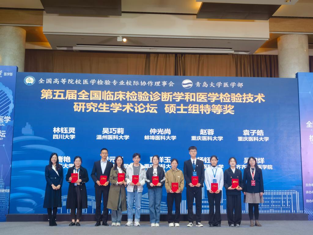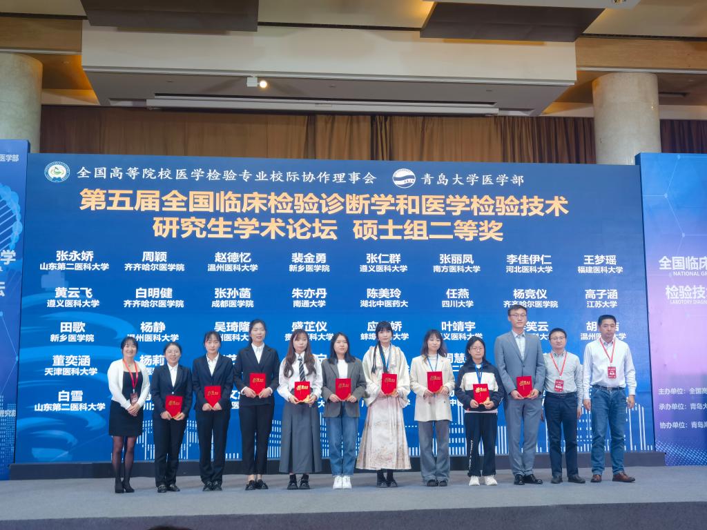 2024年4月12日-15日,《第五届全国临床检验诊断学和医学检验技术研究生学术论坛》在青岛召开。会议由全国高等院校医学检验专业校际协作理事会主办,青岛大学医学部、青岛大学再生医学与检验创新研究院承办。本次会议由永利3044集团官网副经理(主持工作)闵迅教授带队,副经理杨艳教授、临床微生物与免疫检验教研室副主任黄健教授、医学检验学实验室副主任段晓雷博士以及硕士、博士研究生一行10余人共同参加了本次盛会。据悉,本次论坛共暂获特等奖1项、二等奖4项、三等奖1项。
