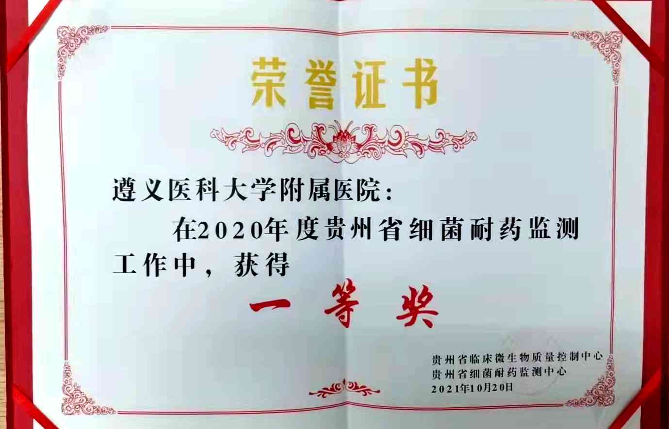 贵州省细菌耐药监测一等奖 |