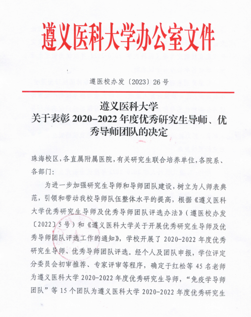 祝贺永利3044集团官网闵迅教授、临床检验诊断学导师团队获得3044永利集团集团2020-2022优秀研究生导师及优秀研究生导师团队!