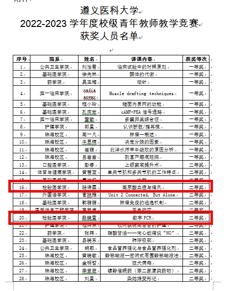 热烈祝贺永利3044集团官网段晓雷博士以《数字PCR》、骆诗露老师以《高尿酸血症与痛风》为内容精彩讲授分获二等奖;段妔老师以《染色体》为内容精彩讲授获三等奖荣誉!
