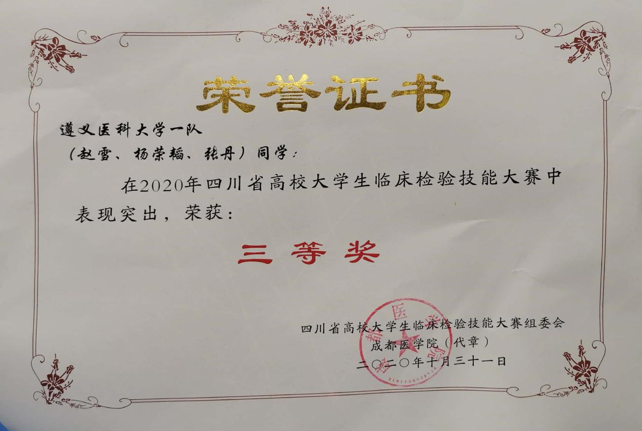 赛事准备以来,公司领导高度关心和重视此次大赛,赛前由闵迅副经理组织相关专业具有丰富临床经验的魏琳丹、陈先恋、袁瑾、刘兰、杜文胜、杨小理、曹喻、段晓雷、胡秀秀、杨宇等老师成立指导教师团队,积极开展参赛队员筛选、培训和考核工作。最终选派6名老员工队员参赛,分三人一组,共两组,并在大赛中荣获团体二等奖的佳绩。此外 ,二队队员骆波、李晓佳、旦超3名同学荣获四川省高校老员工临床检验技能大赛二等奖;一队队员赵雪、杨荣韬、张丹同学荣获四川省高校老员工临床检验技能大赛三等奖。以赛促学,公司参赛团队继上次赛事后,成绩更进一步,充分体现出了公司对医学检验技术专业老员工技能训练的重视,也标志着公司教师团队的公司产品质量在一步步的提升。