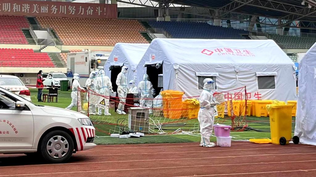 3月12日中午到达务川县体育场后,所有队员来不及休息立即展开场地布置和组织召开动员会,并对抗疫工作进行了细致的分工和部署。由魏在荣副经理担任总指挥,任命闵迅主任为现场指挥,肖代敏、马庆庆共同担任质量和技术主管,向加林担任协调及信息保障组组长,黎兵担任后勤保障组组长,杨小理担任前处理组组长,王勰担任生物安全组组长,并任命黎兵、郑国波、田地分别担任3辆火眼移动式检测车车长,各轮班次共配置9名组长,以满足移动实验室质量和技术相关要求。