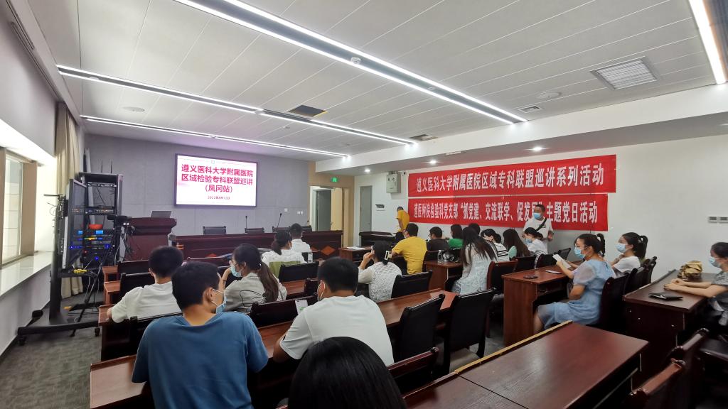 2022年8月17日-19日,检验科党支部组建专家组近20人,由检验科党支部书记陈泽慧同志的带领下,赴余庆、凤冈县、湄潭县医院开展交流联学活动。活动以集中授课及实验室交流方式展开,其中陈泽慧教授、黄健教授、曹喻副教授及骆诗露老师几位专家分别就《规范采集和运送临床临床微生物表本正确解读药敏报告》、《科研设计与论文撰写》、《努力挖掘体液细胞形态诊断加之》及《临床化学室内质量控制及失控后的处理》进行了多场次专题讲座。19日检验科党支部支近20位党员前往湄潭县人民医院检验科实验室与各专业组老师现场交流并针对临床实际工作及党建活动开展做细致的交流。