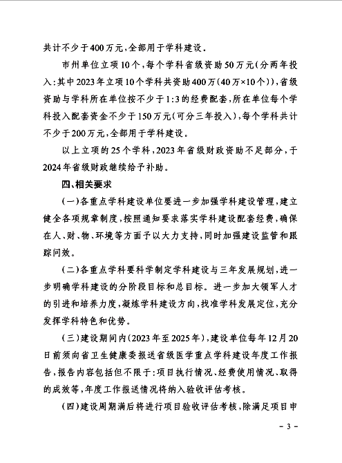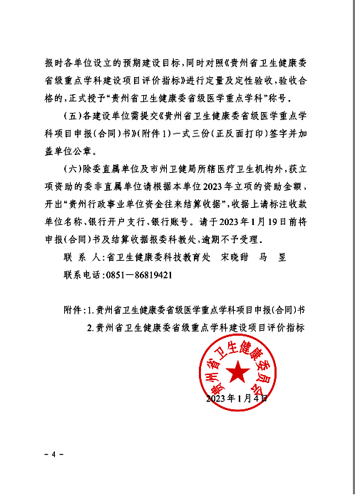 根据《贵州省整体提升卫生健康水平攻坚行动计划(2021—2030年)》文件精神,近年来,省卫健委坚持把保障人民健康放在优先发展的战略地位,以高质量发展为统揽,以提高人均预期寿命为目标,以改革创新为动力,强化组织领导、政策保障、督查考核与资金保障。医公司党委、行政坚持“错层布局、分层建设、抓优扶强、突出特色”的学科发展思路,积极贯彻落实公立医院高质量发展要求,注重团队建设的顶层设计和精准决策,积极开展重点学科建立和培育工作。以教育部第五轮学科评估、国内一流团队建设、三级公立医院绩效考核、中国医院科技量值榜(STEM)、中国医院排行榜(复旦版)、博士学位点申报等专项工作为抓手,以《3044永利集团集团附属医院临床医学国内一流团队建设方案》、《3044永利集团集团附属医院临床学科分类遴选管理办法》及“普通学科骨干培养计划”等制度办法为保障,全力打造了一批品牌学科、优势学科、特色学科,铸造了医院特色学科品牌和专科特色服务品牌,实现了人才、学科、管理、服务等全面提升,医疗质量和服务水平不断提高,为广大群众提供了优质、安全、高效的医疗服务。与此同时,医院各学科努力谋发展,以高质量医疗服务为核心,以高难度医疗技术为特色、高水平科学研究为支撑,合力推动医院综合实力的提升。