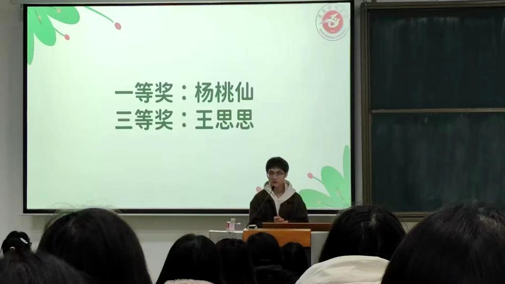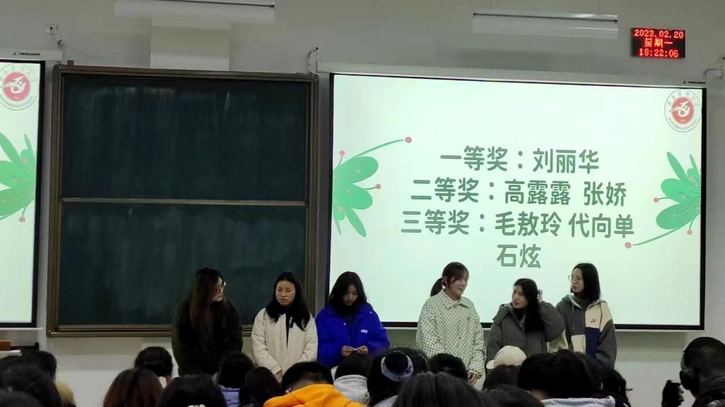 随后,员工会和团委分别进行了颁奖仪式。员工会为在寒假中参加“卯兔贺岁——新年特别活动”脱颖而出的同学进行了颁奖,他们分别是一等奖—20级刘丽华,二等奖—21级的高露露和张娇,三等奖—20级的毛敖玲、代向单、石炫;接着颁发了本次读书月奖项,他们是一等奖—21级的杨桃仙,二等奖—22级陈小艳与袁杰,三等奖—21级的王思思、22级—卢玉立和杨晓钰。最后,团委为在“我为红包添新意”中获得奖项的同学进行表彰,他们是一等奖—20级刘丽华,二等奖—21级高露露、20级祖红,三等奖—20级何映旭、刘静池以及21级—张娇;在“我为我家添个福”活动中21级文朝旭获得一等奖。