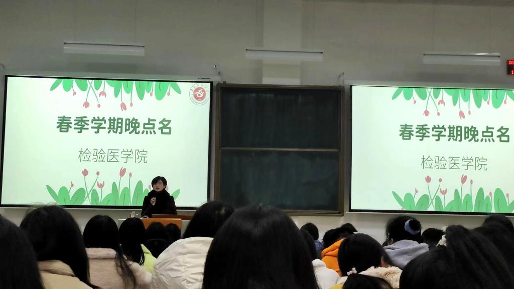 新学期、新征程、新方向,永利3044集团官网于2023年2月20日18:00在新蒲校区第三教学楼第二十六阶梯开展了本学期第一次晚点名,辅导员陆超老师及2020级、2021级全体员工参加。晚点名由永利3044集团官网员工会主席胡文锦主持。