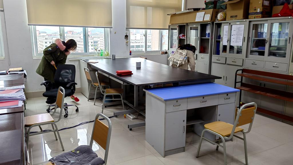 院系办公室小组打扫中