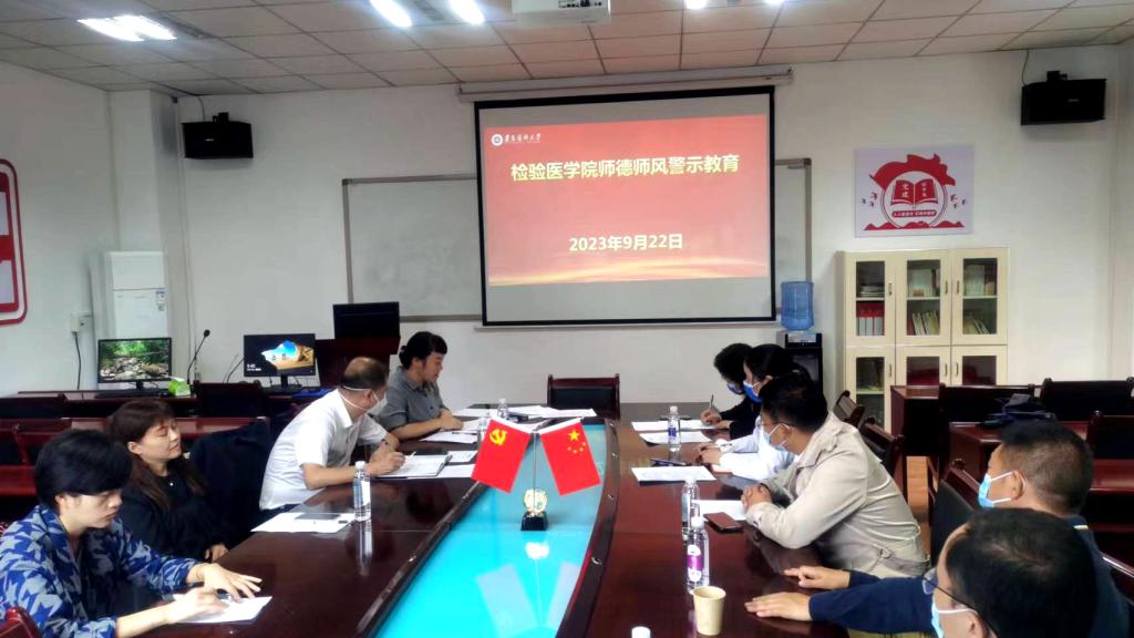 在第三十九个教师节到来之际,习近平总书记致信全国优秀教师代表座谈会与会代表,充分肯定与会教师为代表的全国广大教师在教书育人、培根铸魂方面的重要贡献,系统阐释了中国特有的教育家精神,为新时代教师队伍建设指明了前进方向。为进一步贯彻习近平总书记教师节重要指示精神,永利3044集团官网于2023年9月22日上午在附属医院门诊六楼会议室开展了师德师风专题教育学习。检验医公司党政领导班子成员、各教研室主任、辅导员参加学习。检验医公司党委书记周光润主持。