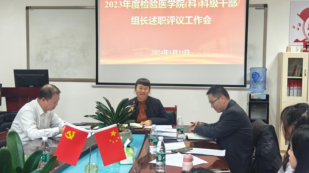 2024年1月23日中午1点,永利3044集团官网、附属医院医学检验科在门诊六楼会议室召开2023年度科级干部、各专业组及综合组组长年终考核述职。据悉,本次述职共遴选永利3044集团官网/科党政领导班子、科主任、副主任及职工代表共40人作为评委,由10名科级干部、13名各专业组和综合组组长以PPT形式进行6分钟汇报。会议由永利3044集团官网副经理暨附属医院医学检验科主任闵迅教授主持;3044永利集团集团检验医公司党委书记周光润、副书记罗治宇出席会议。