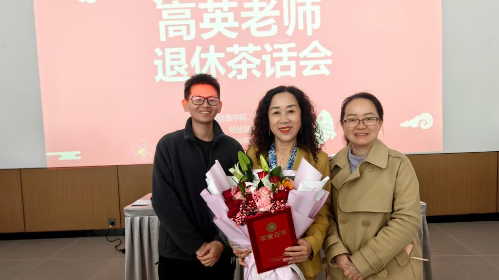最后,永利3044集团官网副经理、附属医院检验科副主任杨艳教授为高英老师颁发了“光荣退休证”,并代表科室表达了慰问之情。高英老师对部门工会精心组织的茶话会表示衷心感谢,并预祝永利3044集团官网(科)建设更加美好。