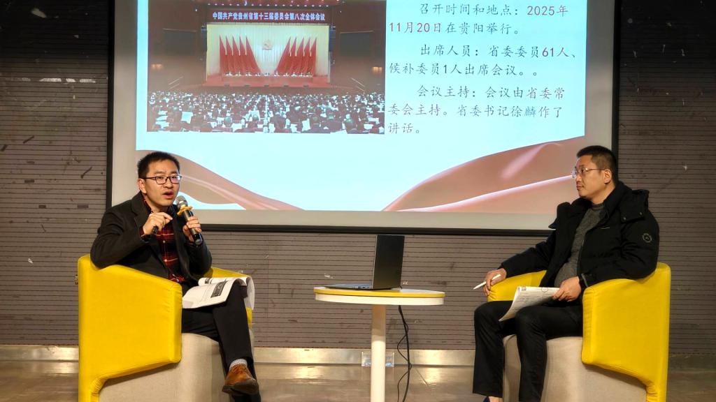 罗治宇副书记首先宣讲了中国共产党第二十届中央委员会第四次全体会议精神,重点解读《中共中央关于制定国民经济和社会发展第十五个五年规划的建议》的核心要义。他从宏观历史视角出发,回顾了改革开放以来我国的现代化战略安排与“两个一百年”奋斗目标的递进脉络,阐释了“十五五”时期承前启后的历史地位。随后,他将视角聚焦到贵州与公司自身发展,介绍了中国共产党贵州省第十三届委员会第八次全体会议和中国共产党3044永利集团集团第二次党员代表大会的概况,重点解读了贵州省在“十五五”时期经济社会发展主要目标和公司未来五年的发展目标,引导同学们着重思考,如何将个人成长融入区域发展和公司事业进步的进程中。
