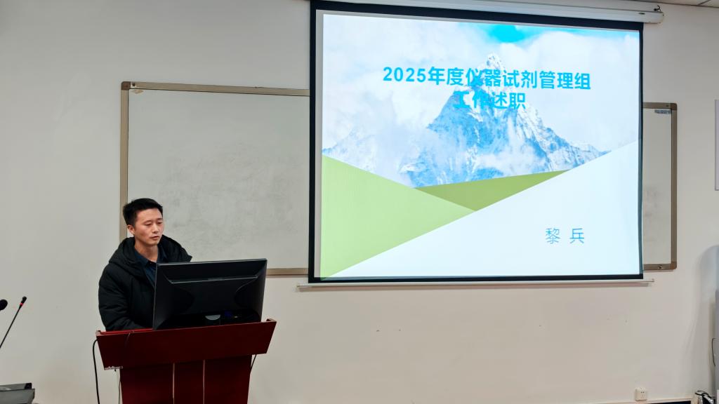 仪器试剂管理组组长黎兵汇报