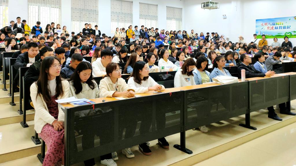 70年来,中国为什么能走过光辉历程、创造伟大奇迹,归根结底是因为有中国共产党的坚强领导,在于我们党始终不忘初心、牢记使命。他希望同学们能够努力学好把马克思主义基本原理,同中国具体国情相结合,不断深入学习领悟习近平总书记重要讲话精神,用青春的底色引领了中国社会的发展,为实现中华民族的伟大复兴而奋发努力。(撰稿及摄影:付 裕  审 稿:蔡亮容)