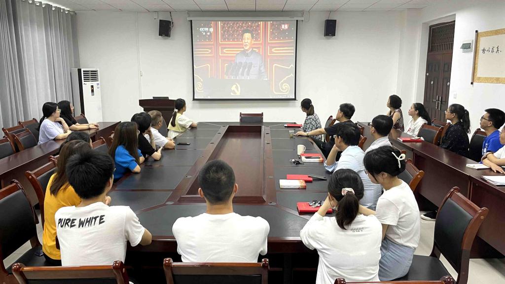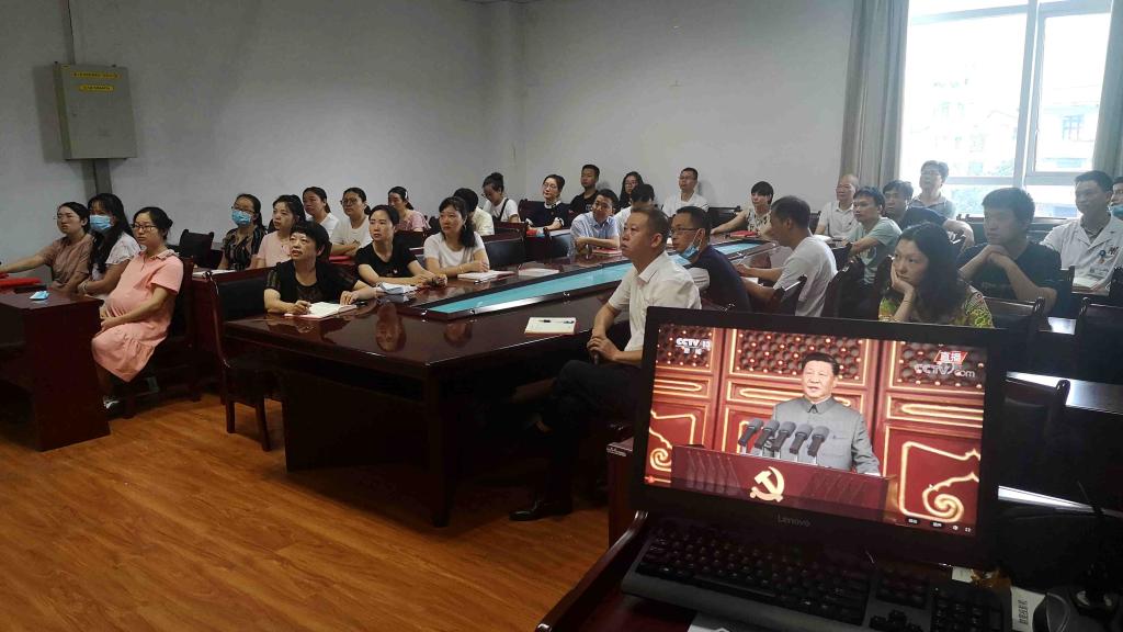 2021年7月1日上午8时,庆祝中国共产党成立100周年大会在北京天安门广场隆重举行。中共中央总书记、国家主席、中央军委主席习近平发表重要讲话。检验医公司党委书记罗开源、经理林世德及全体新蒲上班教师和员工党支部党员在公司会议室集中观看了“中国共产党成立100周年庆祝大会”直播;附属医院检验科党支部全体党员同志于门诊六楼会议室集中收看“中国共产党成立100周年庆祝大会”直播;此外,实习年级员工党员同志也分别使用手机或电脑的方式观看了“中国共产党成立100周年庆祝大会”直播。
