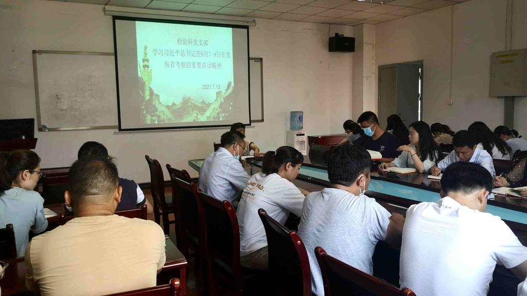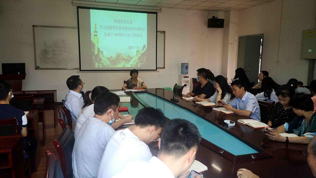 2021年7月13日上午,检验科党支部召开党员大会,专题深入学习贯彻习近平总书记在庆祝中国共产党成立100周年大会上的讲话精神。党支部书记陈泽慧领学并主持研讨。